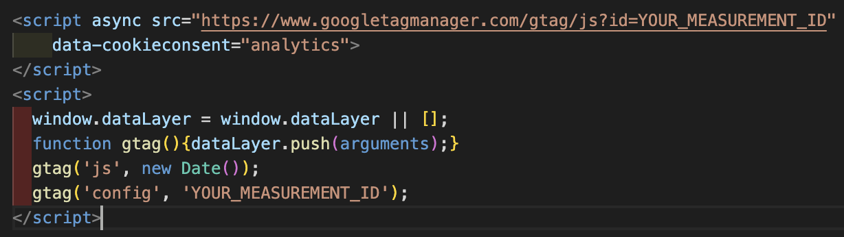 data-cookieconsent="analytics"to the script tag if you're using a cookie consent solution. The updated tag should look like this: