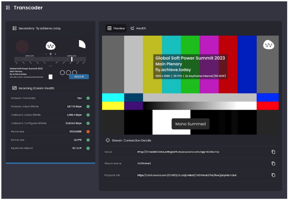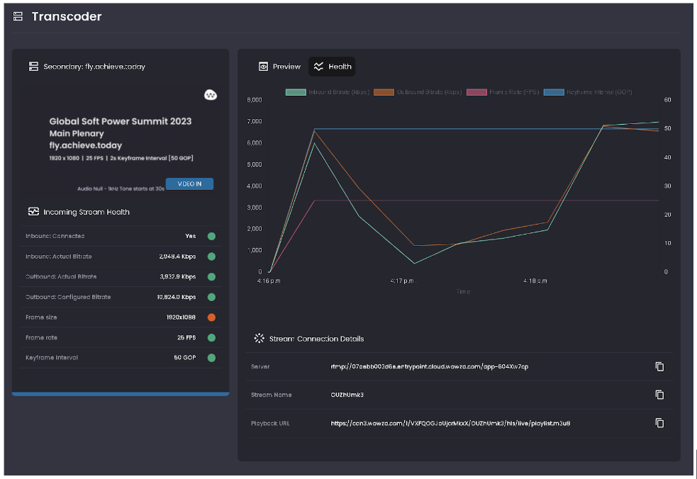 Using the links provided to your transcoder previews, you’ll be able to view the following data:&#x20;